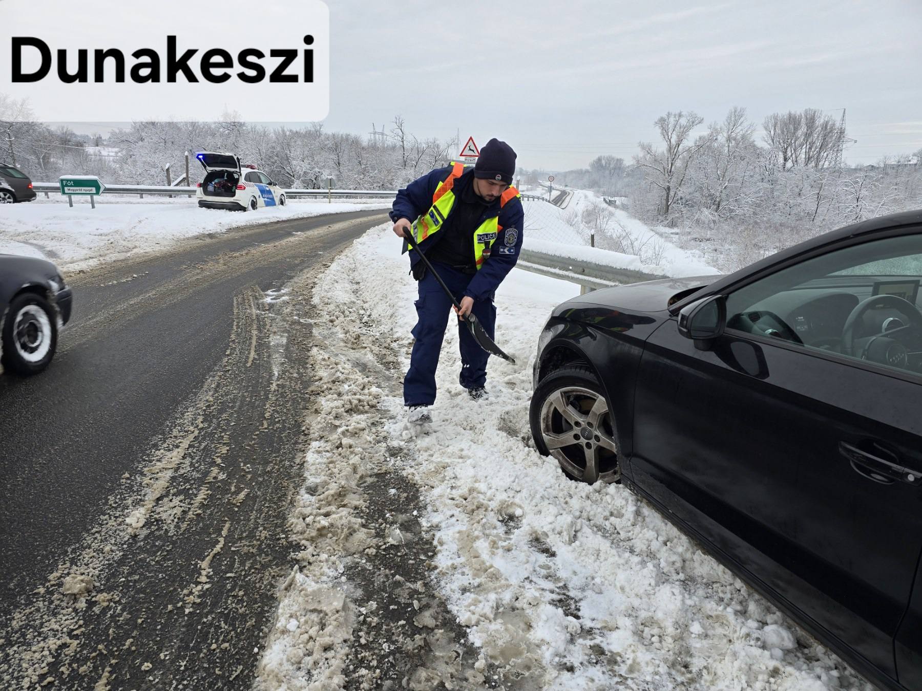 Emellett több esetnél is segítettek az elakadt autósoknak, korábban egy Tesla, tegnap pedig egy Audi akadt el a hóban Dunakeszi térségében.
