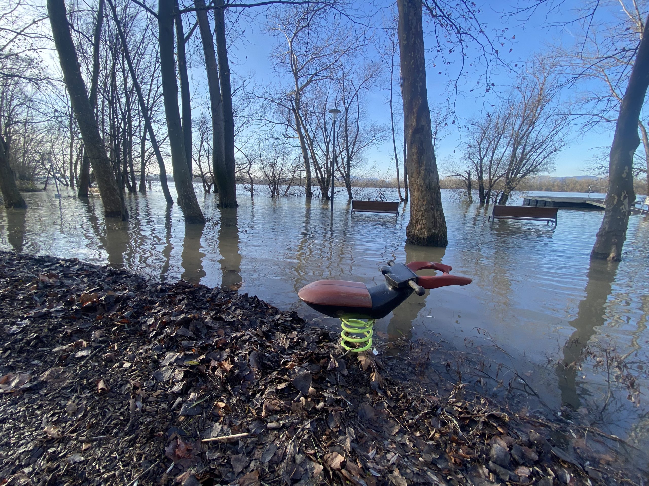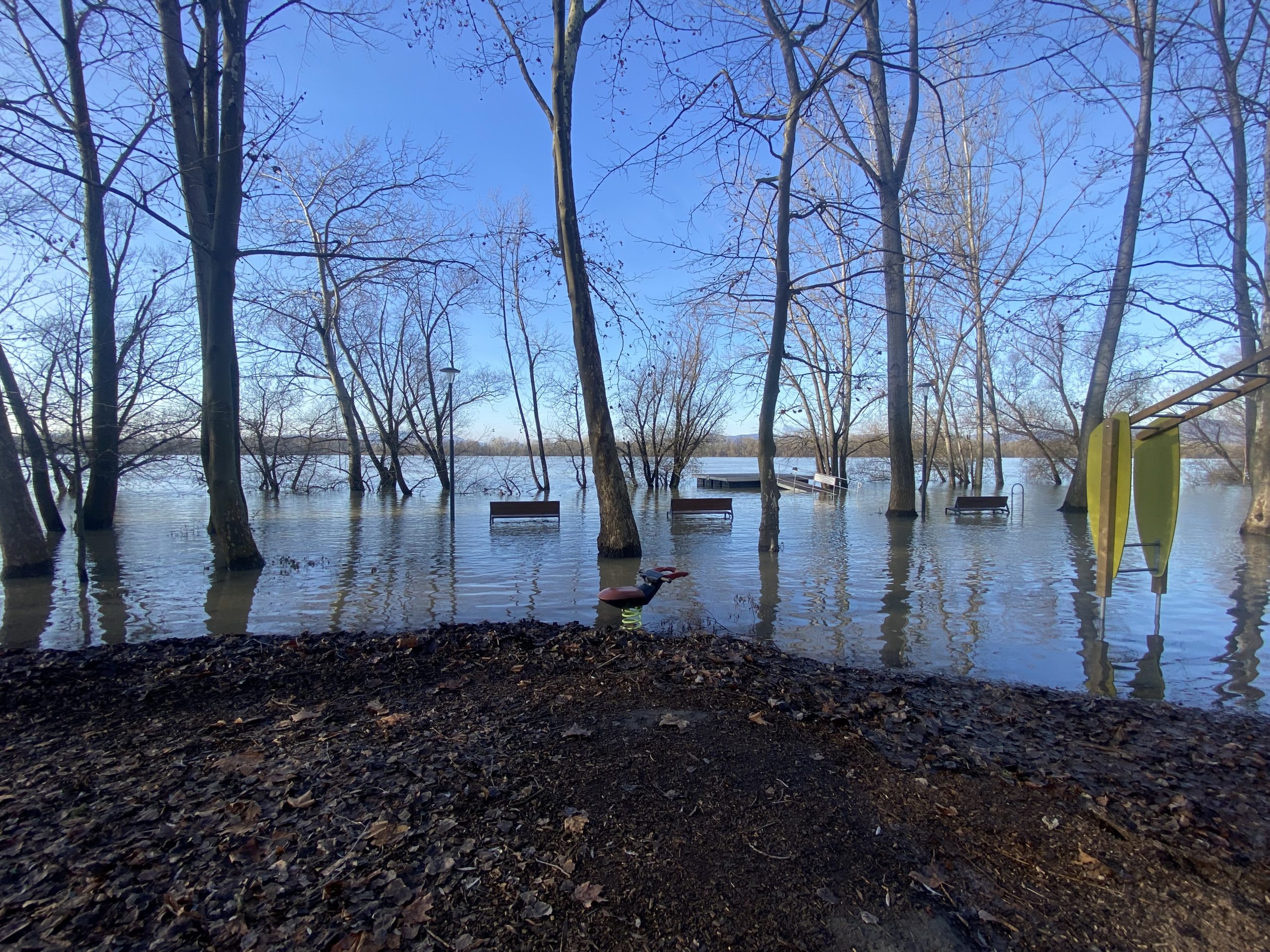 A strandon kialakított játszóteret sem lehet használni – idő, amíg levonul az ár, és elvégzik a takarítást.