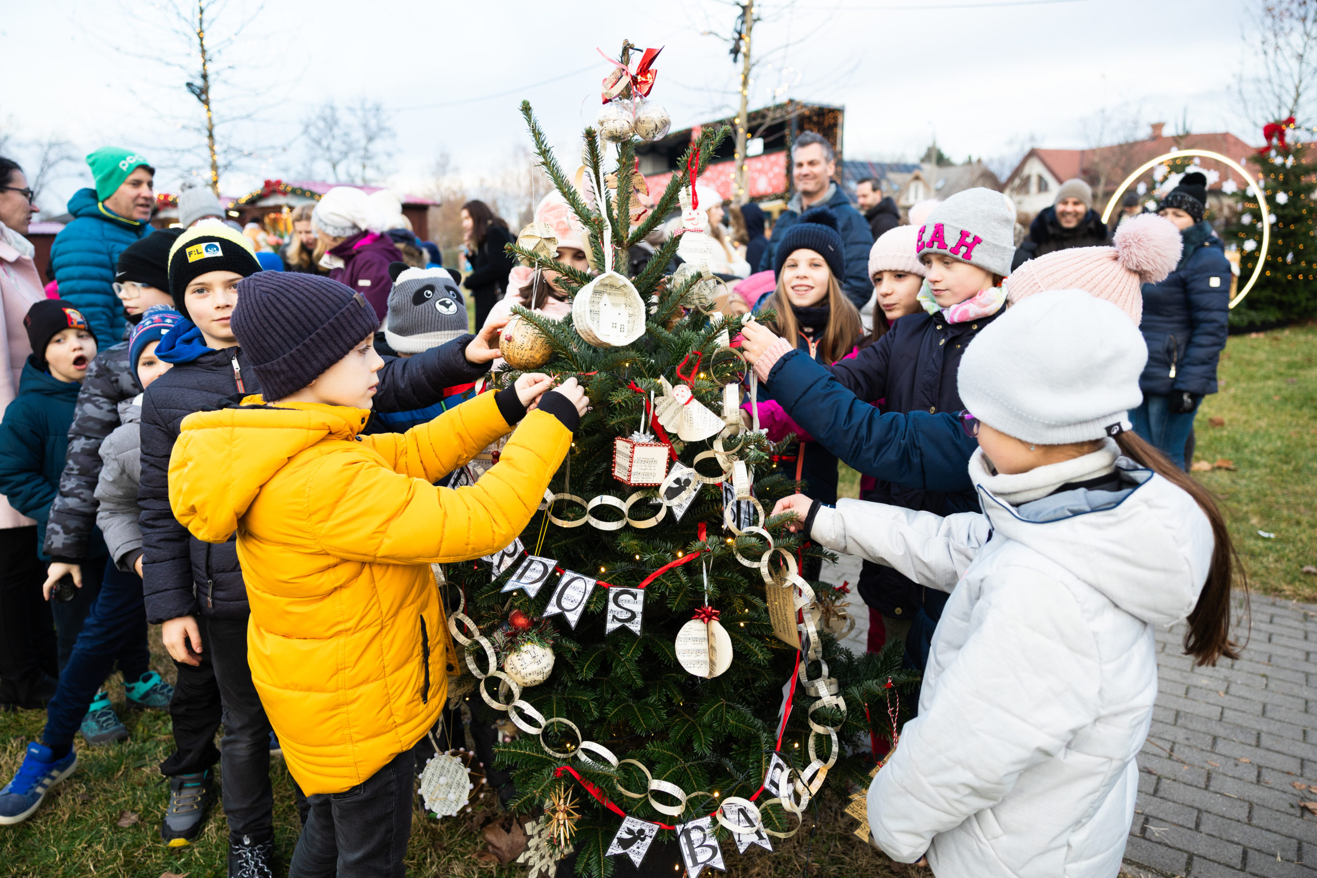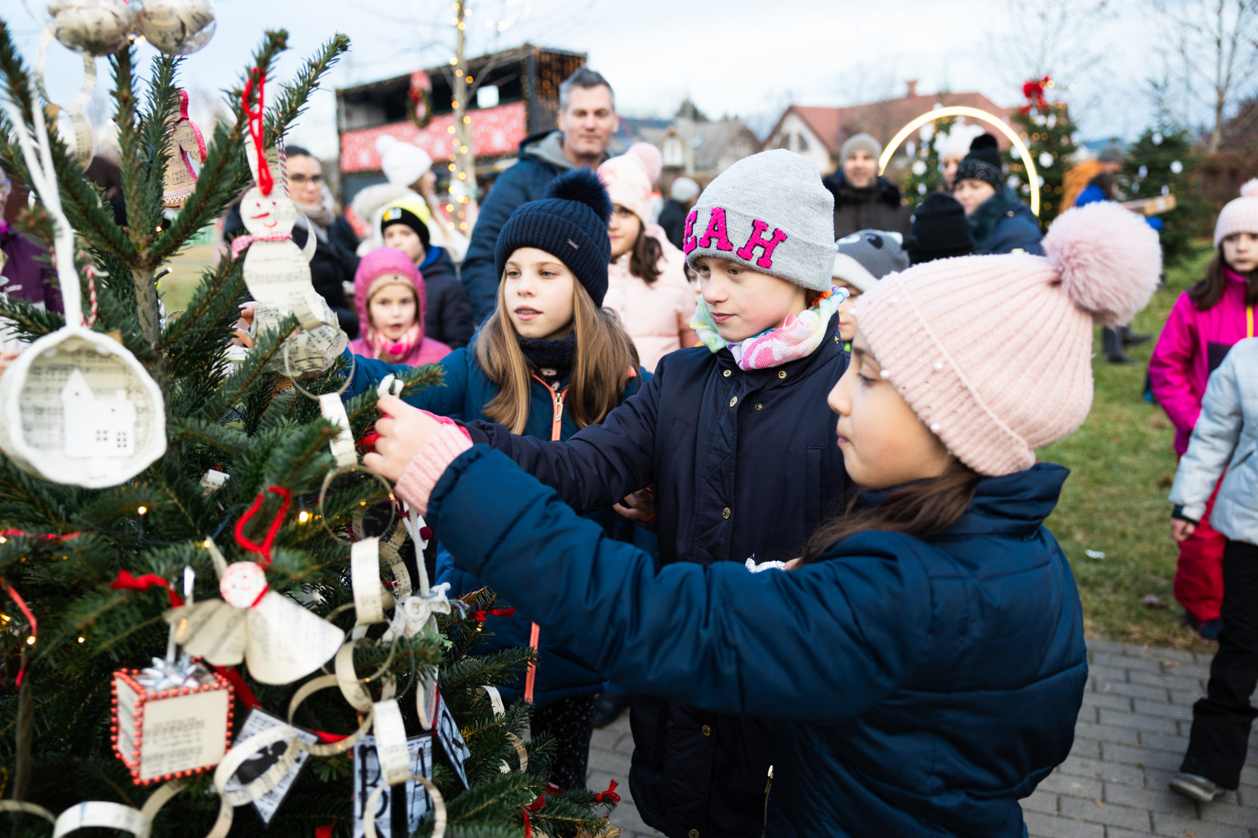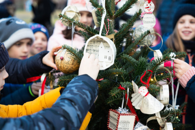 Délután 15:30-tól a dunakeszi általános iskolák tanulói közösen díszítették fel az adventi fenyőt.