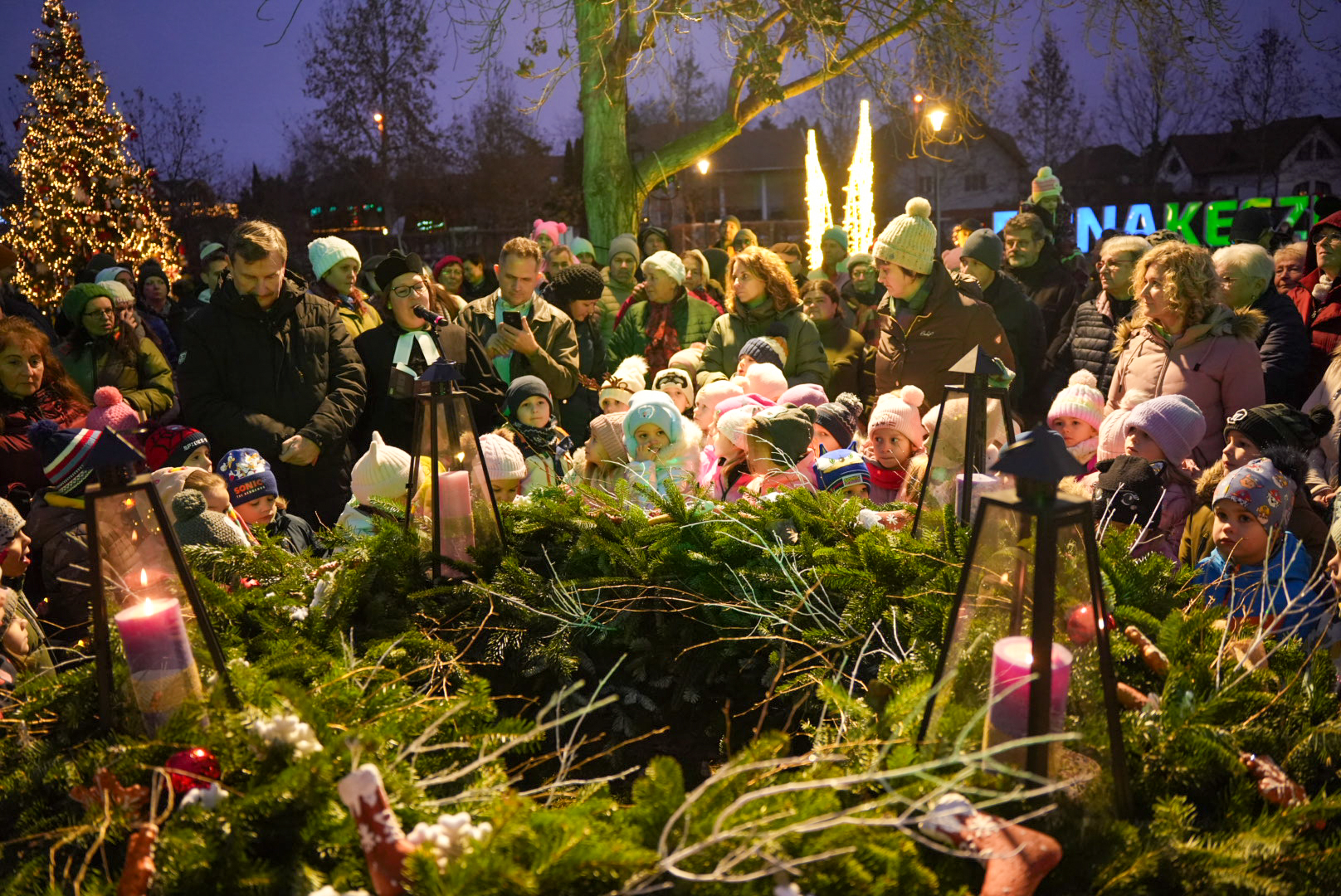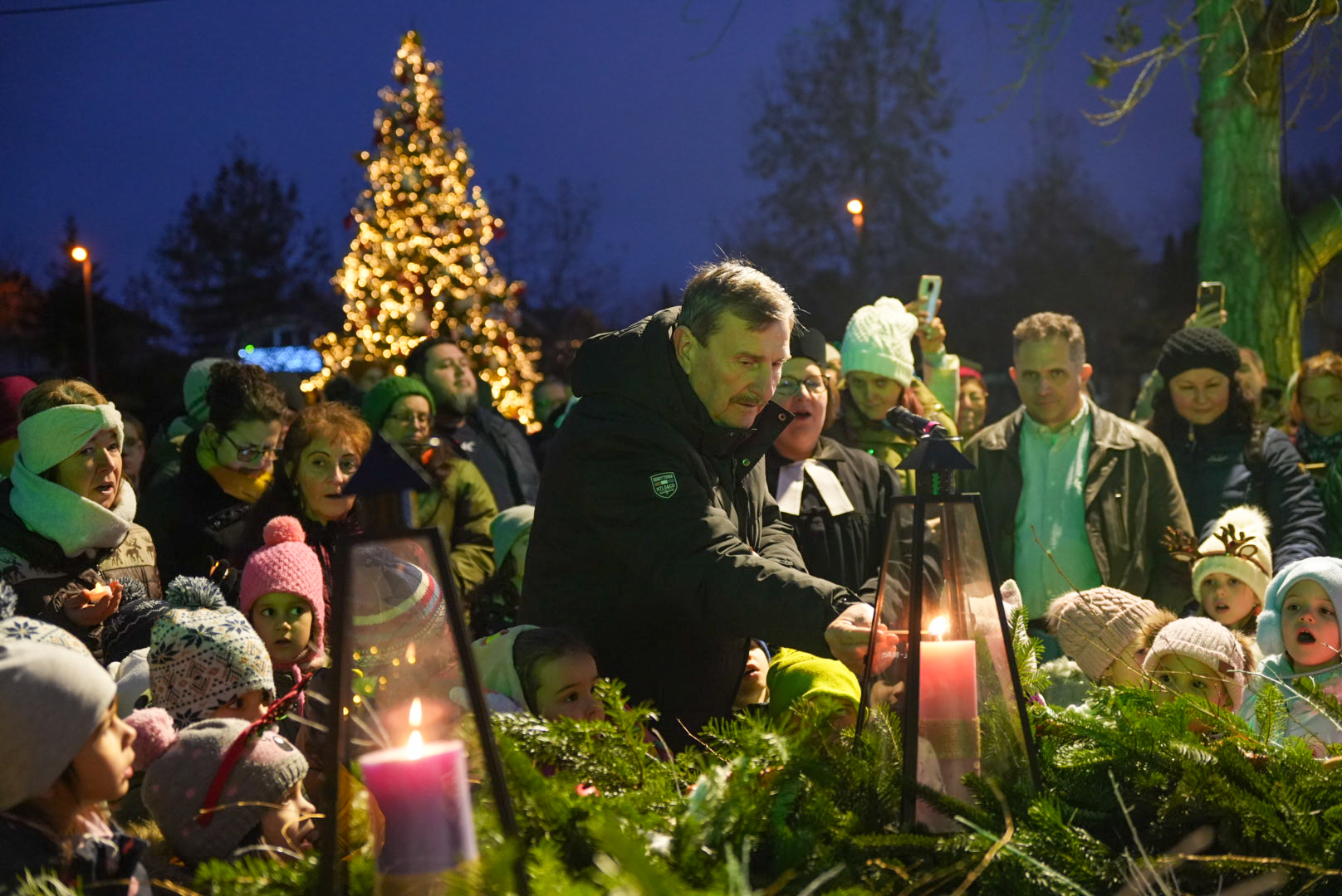 December 14-én, vasárnap a harmadik, örömhírt szimbolizáló gyertyát is meggyújtották a városi adventi koszorún. A Meseház Tagóvoda adventi műsora után dr. Petriné Chikán Katalin evangélikus lelkész osztotta meg az ünnepi gondolatait.
