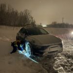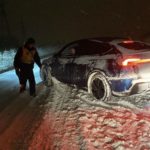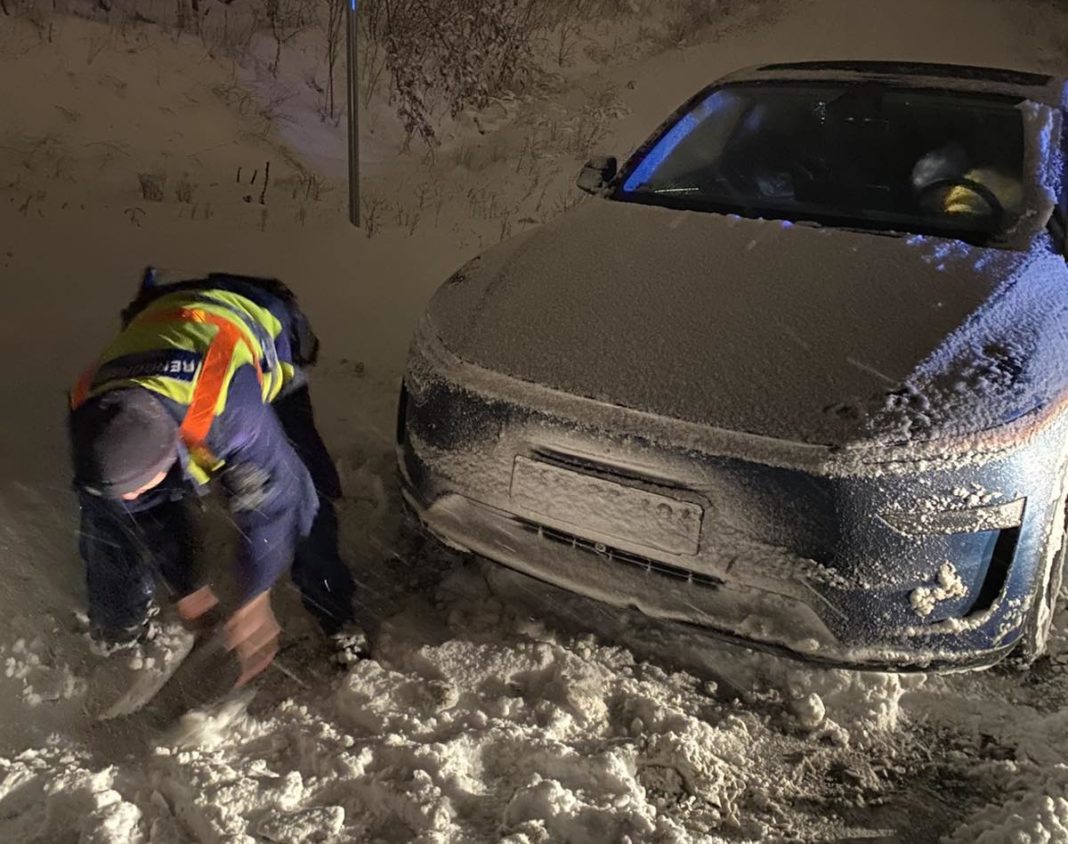 Az éjszakai órákban, nagyjából hajnali 1 órakor Dunakeszin, a Klapka utcában, lakott területen kívül egy Tesla gyártmányú gépjármű elakadt a hóban, a rendőrök segítettek a sofőrnek.