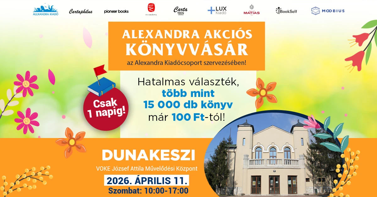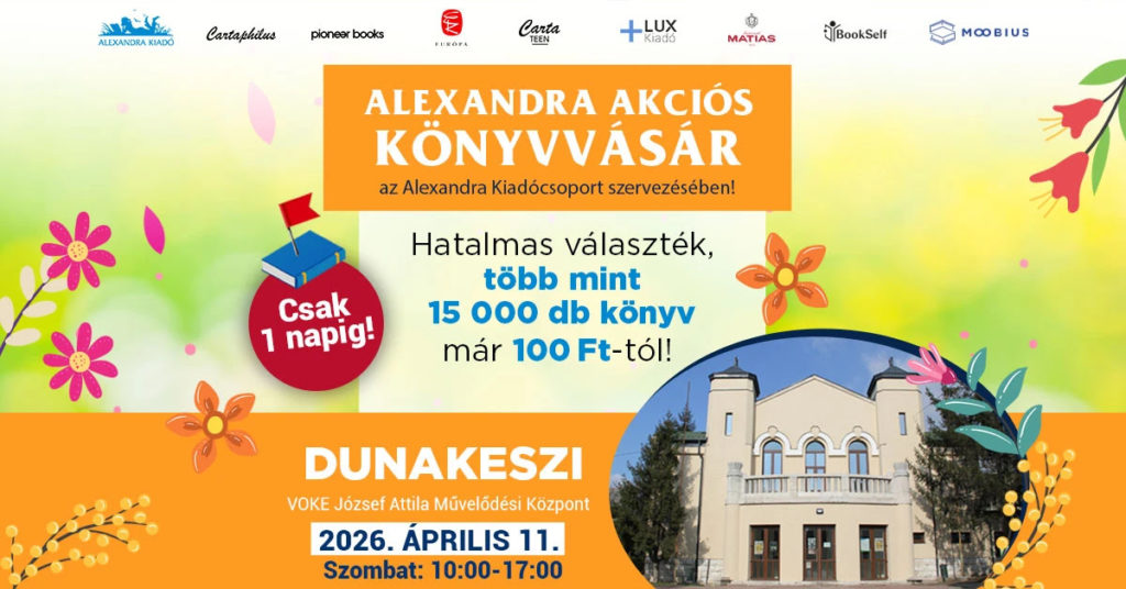 Április 11-én, szombaton, 10 és 17 óra között az Alexandra Kiadócsoport akciós könyvvására érkezik a VOKE József Attila Művelődési Központba. A látogatók több mint 15 ezer könyv közül válogathatnak már 100 forintos ártól. A kínálatban hibátlan és kisebb szépséghibás kiadványok egyaránt megtalálhatók. A vásár a készlet erejéig tart, a helyszínen bankkártyás fizetés is lehetséges. Bővebb információ.