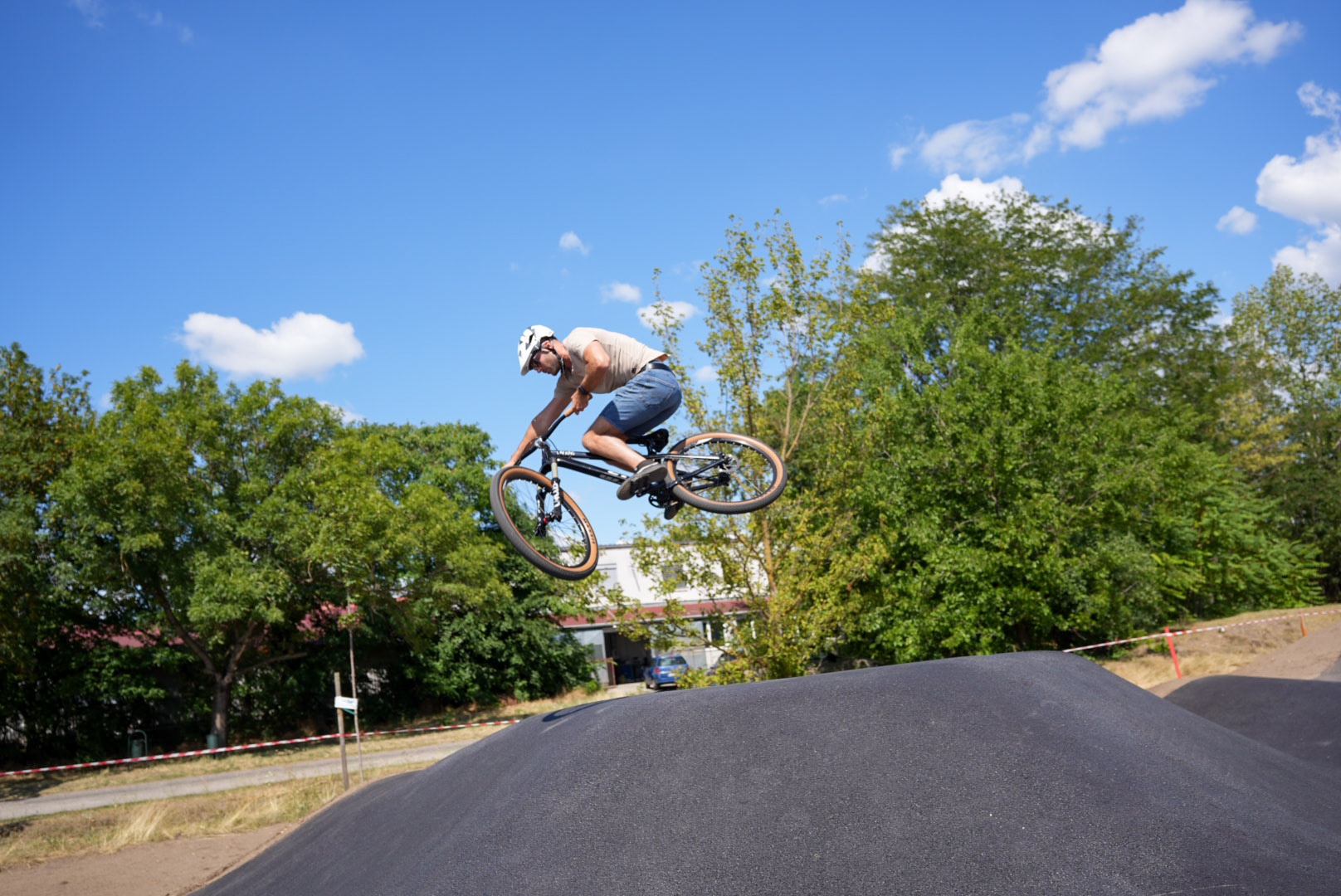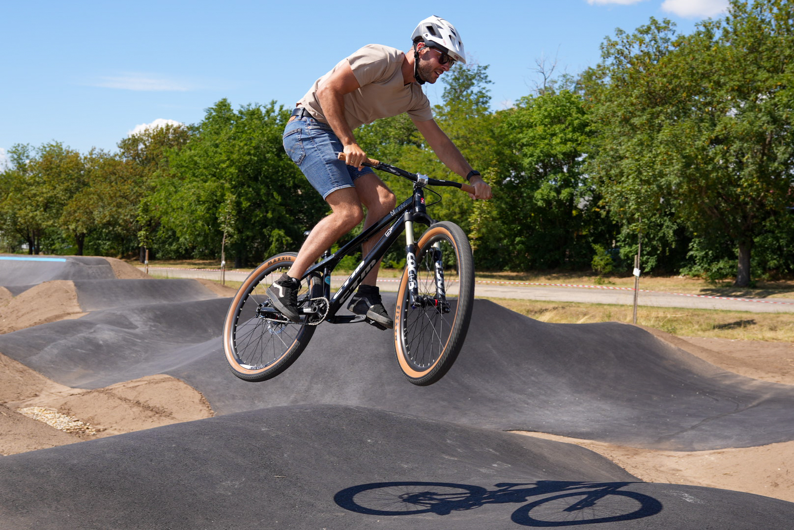 A repülőtér melletti ligetprojekt részeként létrehozott pumpapálya nem csupán a gyerekeknek jelent majd szórakozást: kezdők és profi versenyzők egyaránt használhatják, ugyanis a létesítmény nemzetközi versenyzésre is alkalmas.