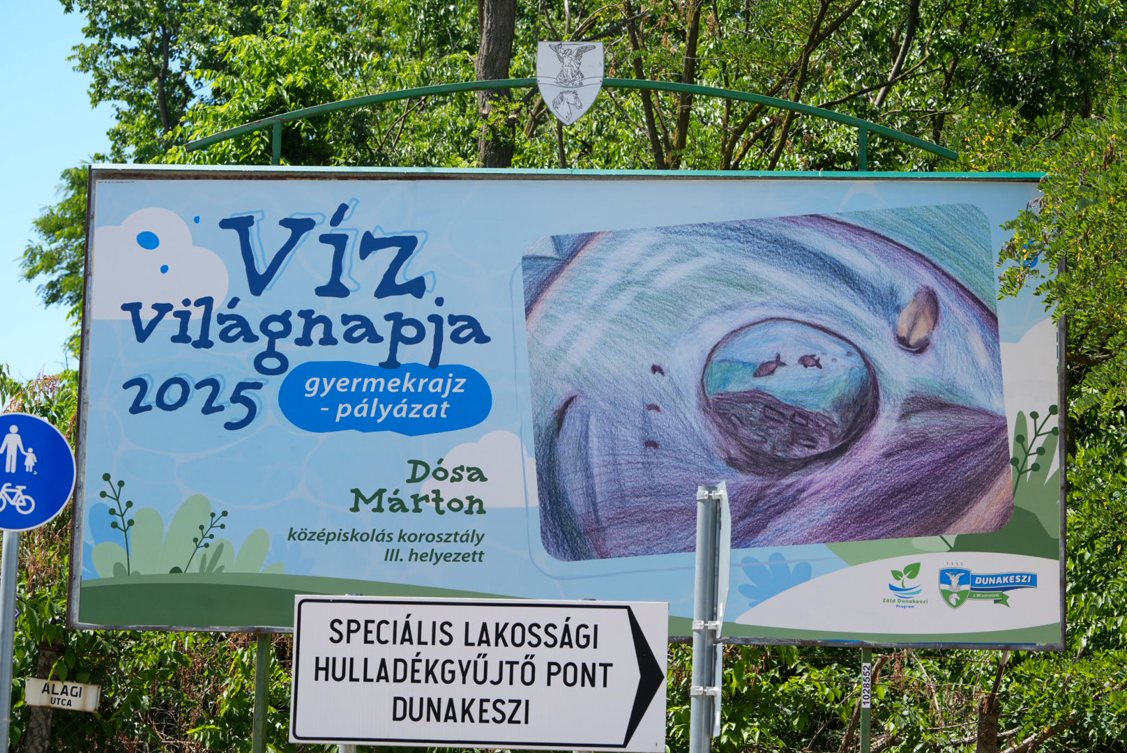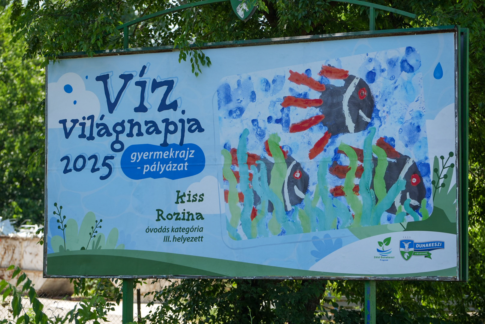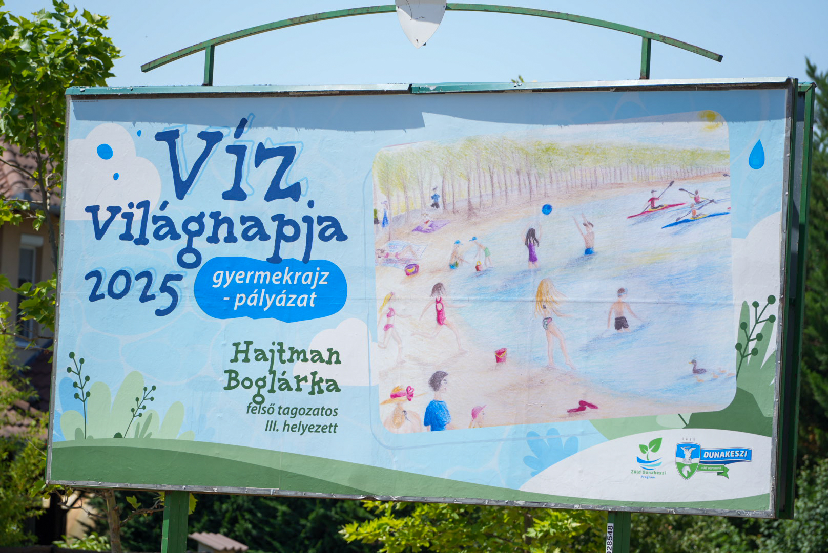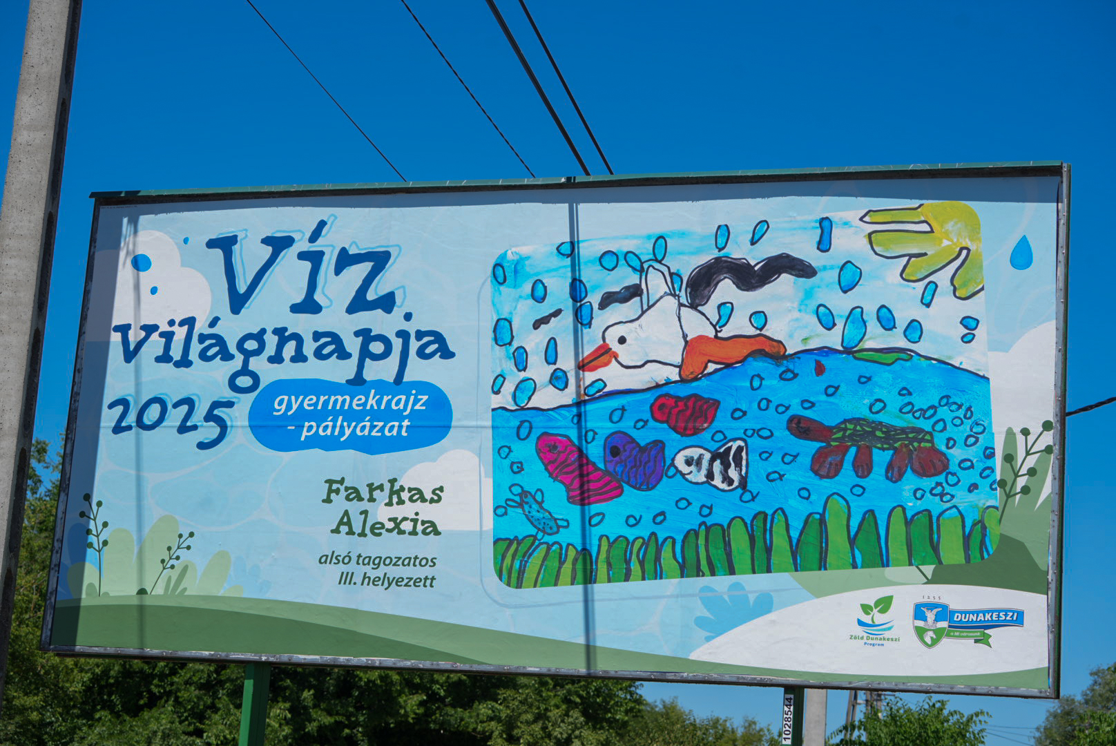 Az önkormányzat a Zöld Dunakeszi Program részeként idén is rajzpályázatot hirdetett óvodás és általános iskolás korú gyermekeknek a víz világnapja alkalmából. Az eredményt a Katonadombon hirdették ki, most pedig óriásplakátokon csodálhatjuk meg a díjazott pályaműveket.