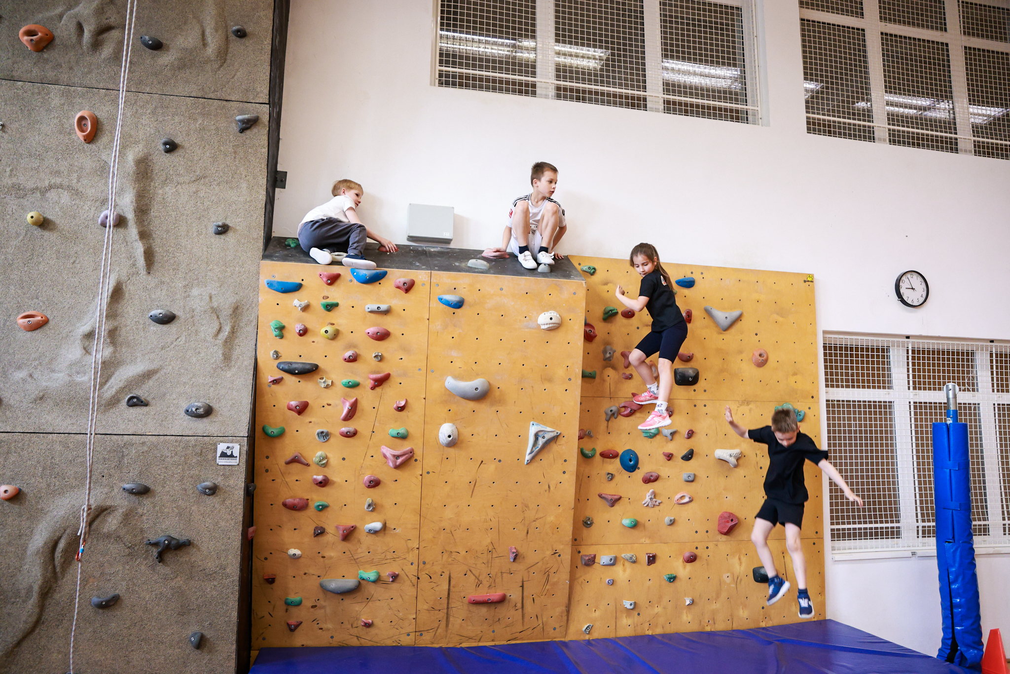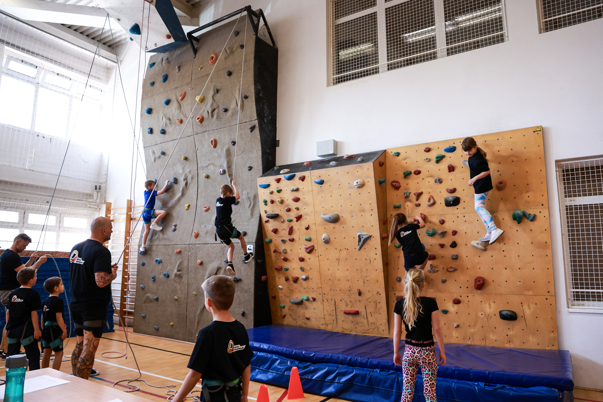 Tíz év után újra gyerekzsivajtól és biztató kiáltásoktól visszhangzott a mászófal a Kőrösi iskolában. Aki szombat délelőtt benézett a tornaterembe, az nem egy megszokott testnevelésórát látott: apró kezek keresték a következő fogást, cipők csikorogtak a falon, lent pedig szülők és szervezők számolták a másodperceket és lelkesen szurkoltak.