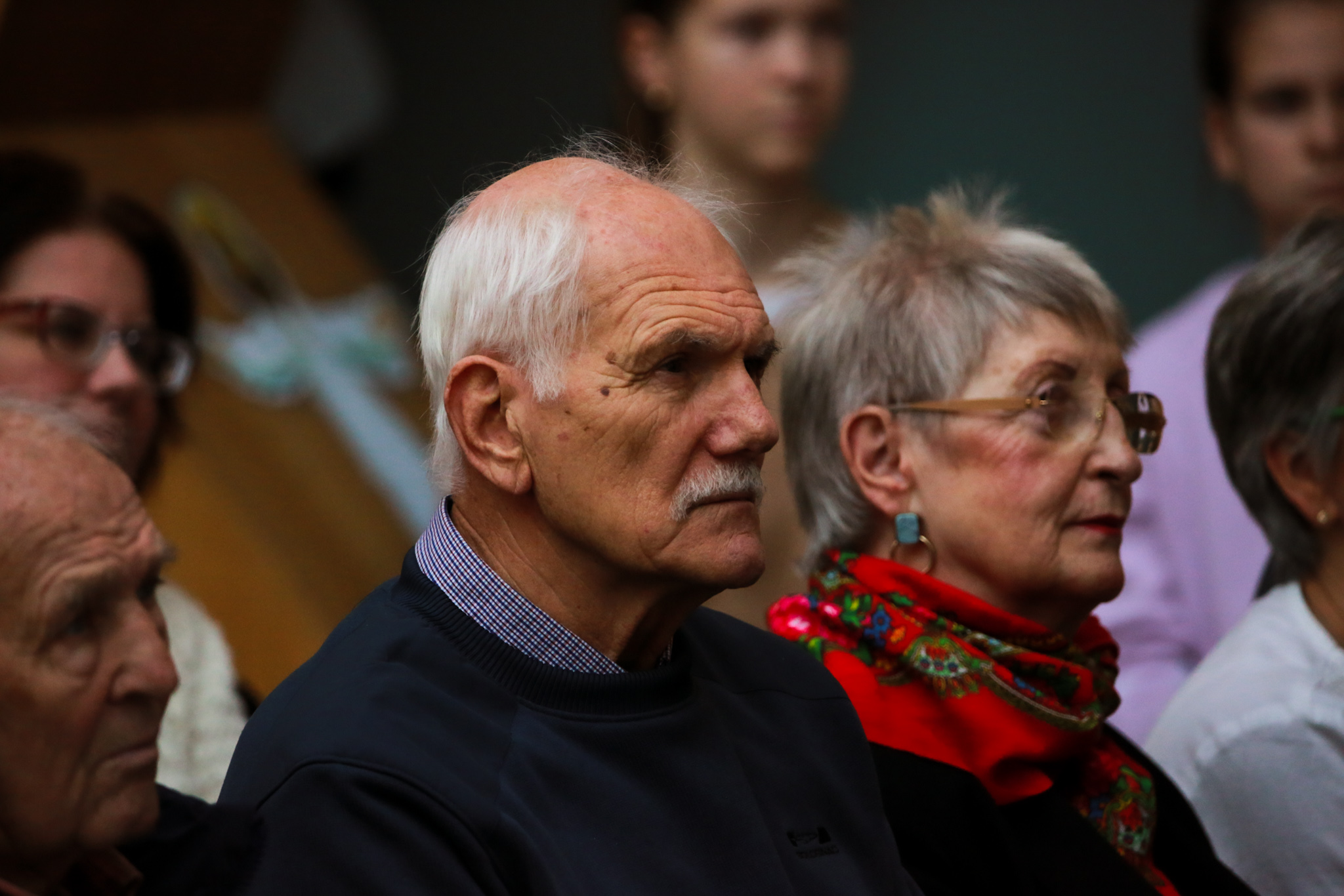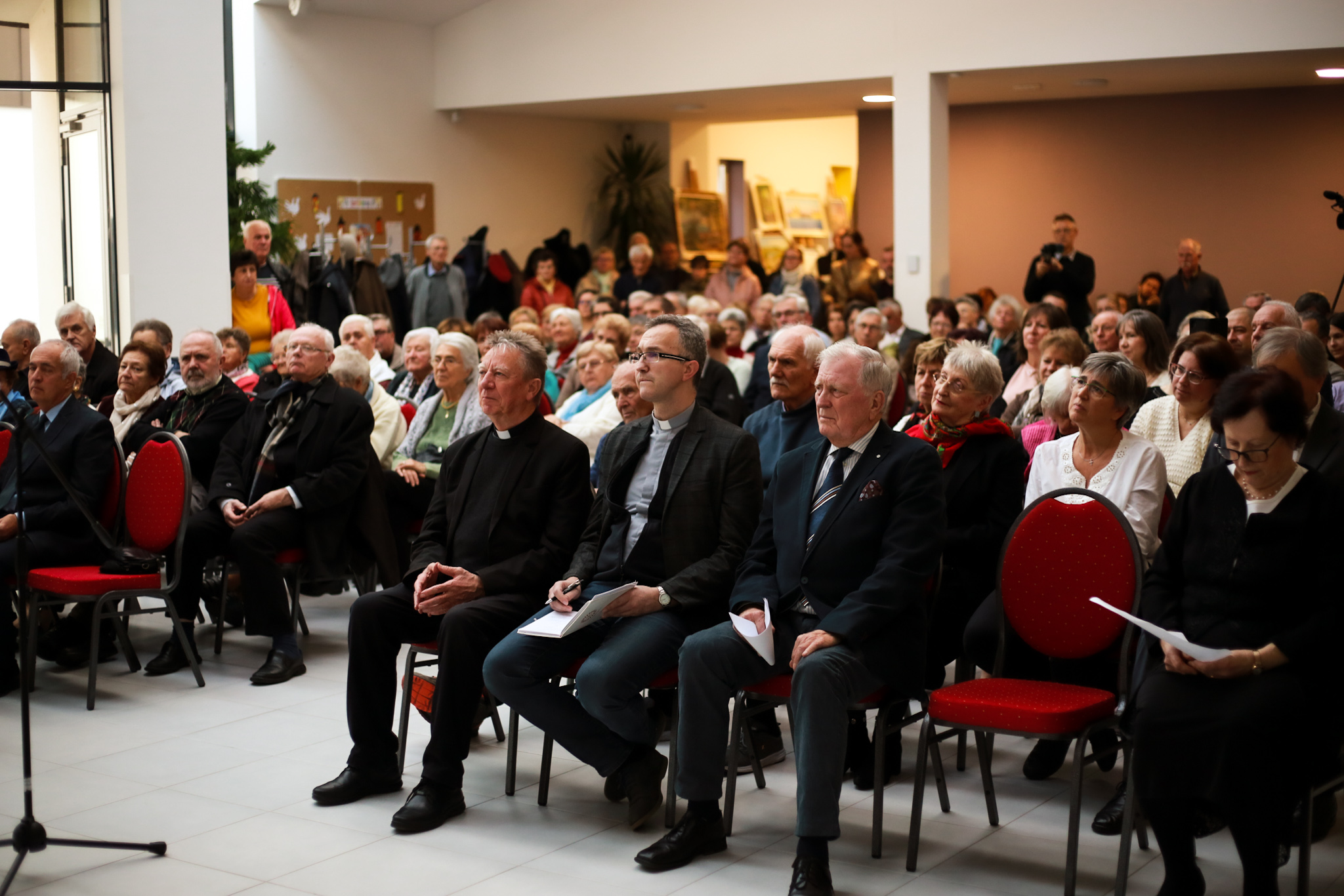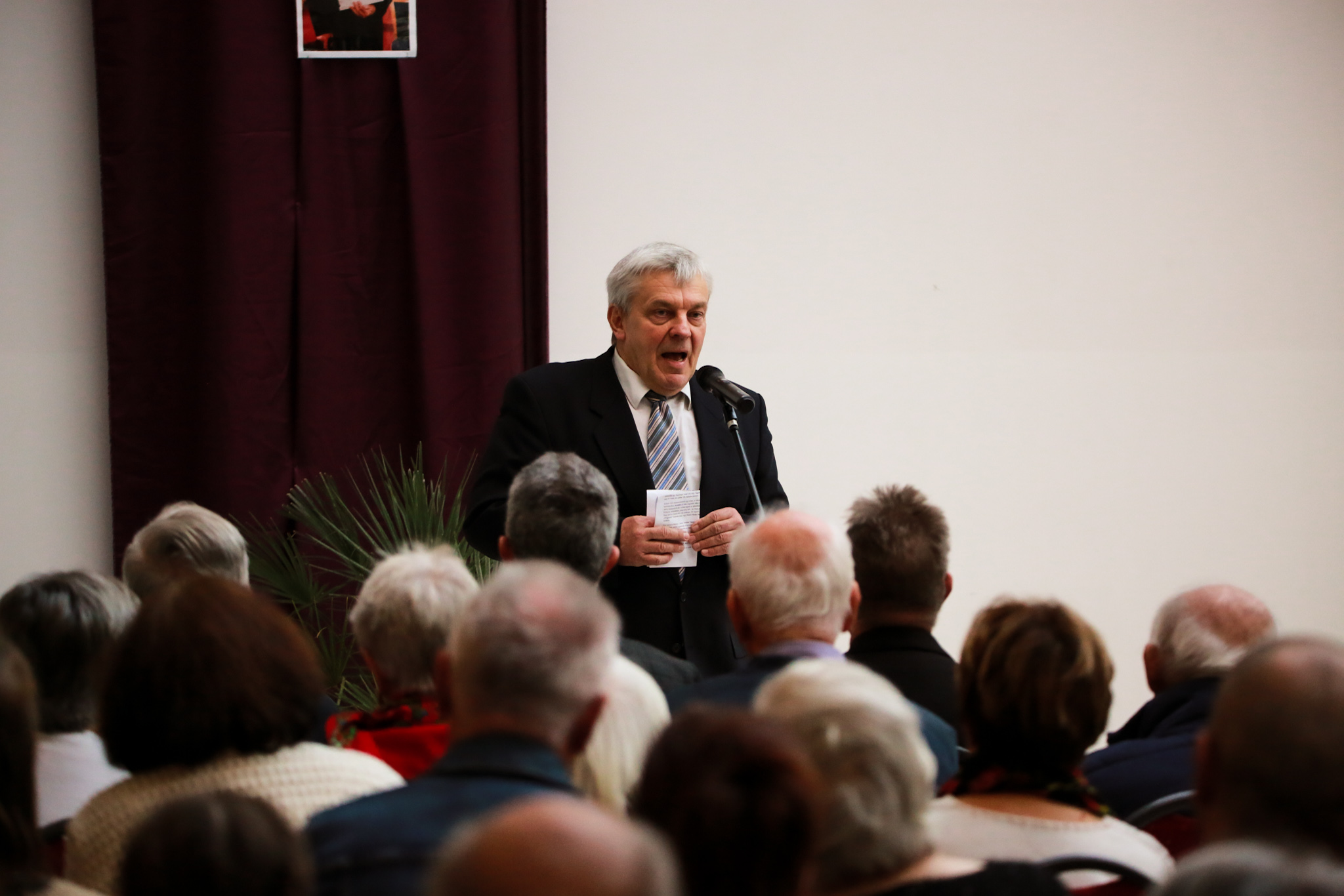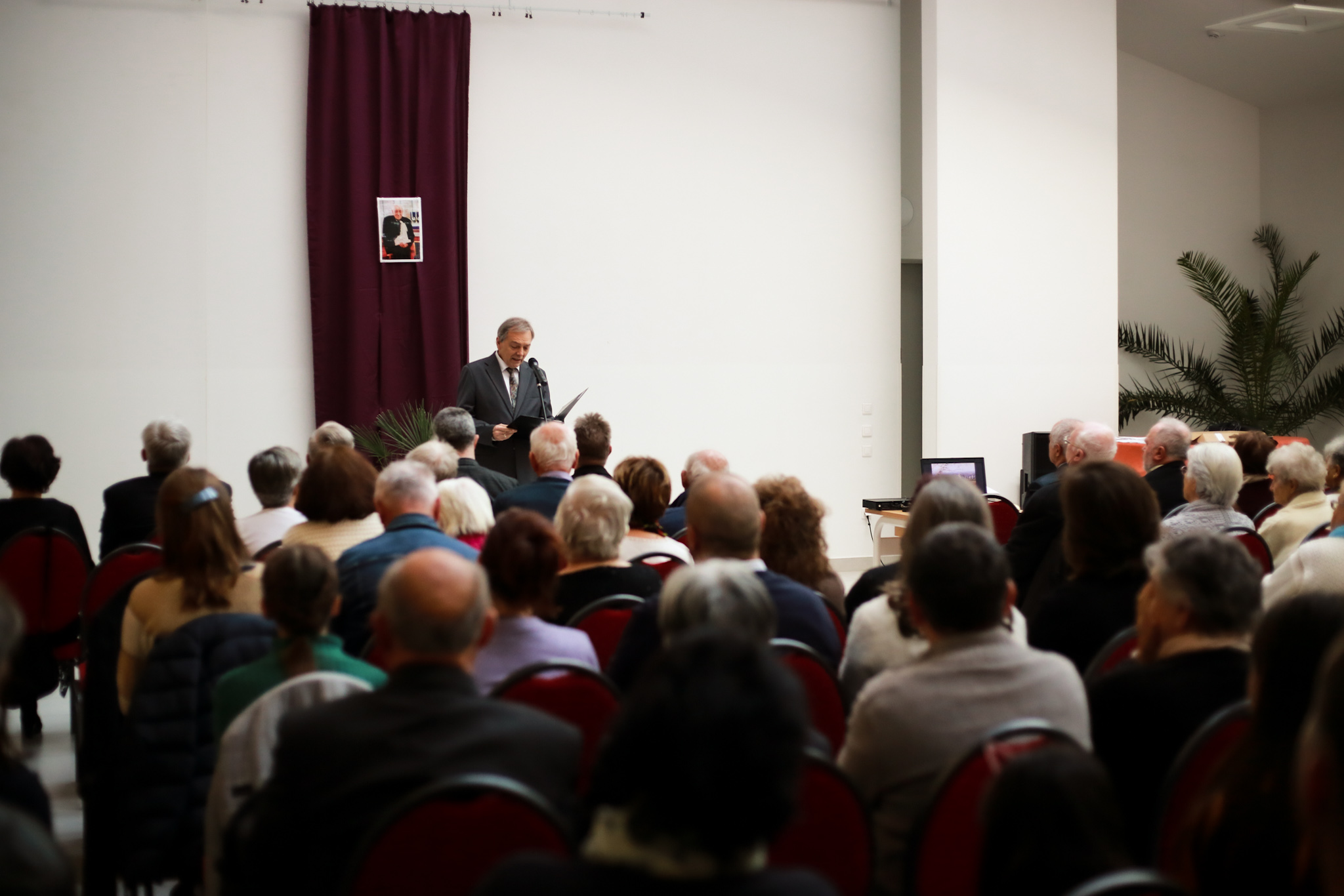 A Krisztus Király Katolikus Általános Iskola aulája teljesen megtelt. Ujréti László, Jászai Mari-díjas színművész olvasta fel Brusznyai atya legkedvesebb verseit.