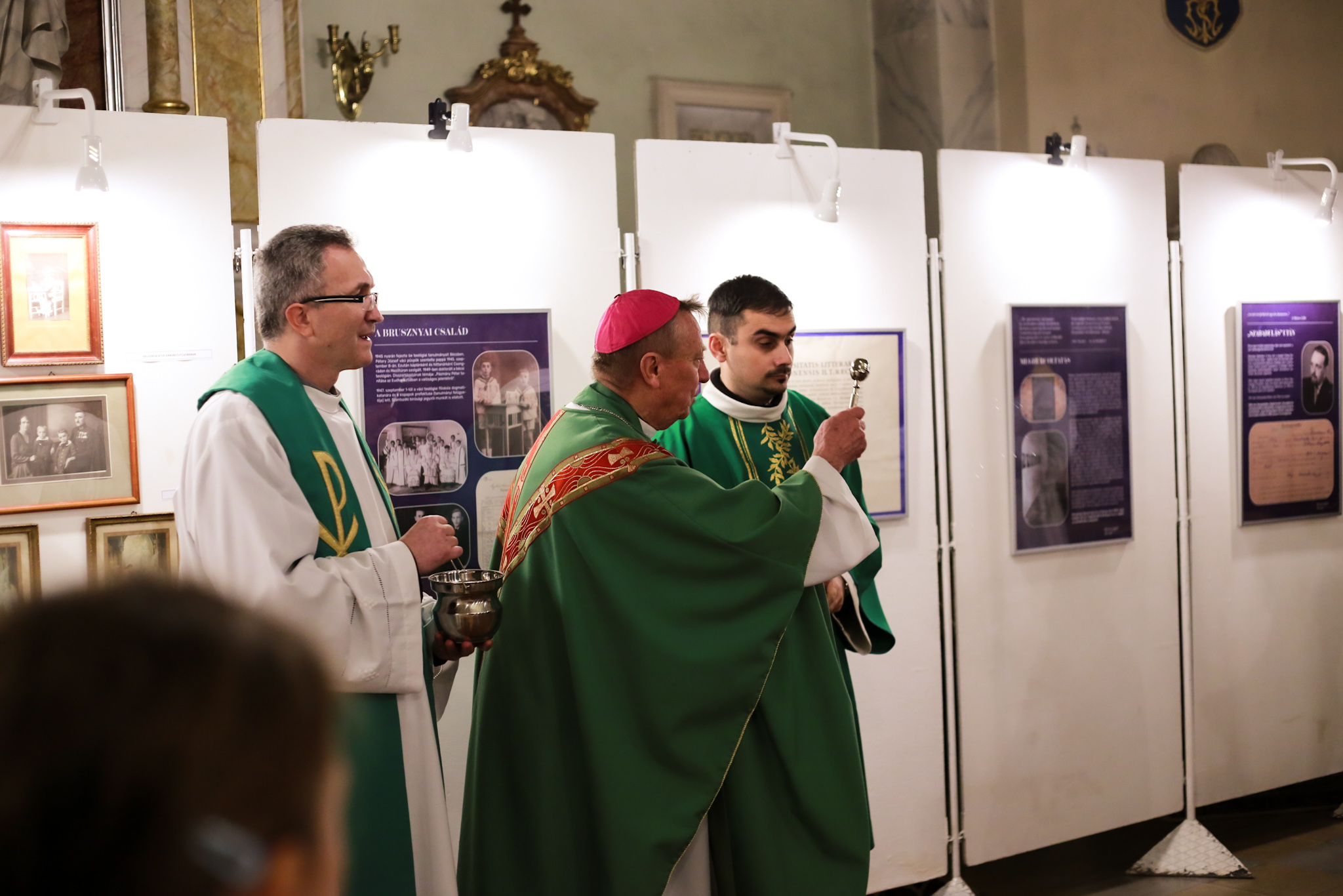 Ezt követően került sor a szentmisére. A misét Dr. Beer Miklós nyugalmazott püspök celebrálta. A mise végén megáldotta, majd megnyitotta a Brusznyai atya életútját bemutató kiállítást.
